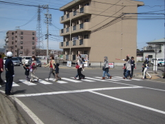 4月9日に、親子交通安全教室を行いました。警察の方に来ていただき、交通安全についてのお話を聞いたり、実際に園の周辺を歩いて横断歩道の正しい渡り方や、横断歩道のない道の安全な渡り方などについて学びました。 |