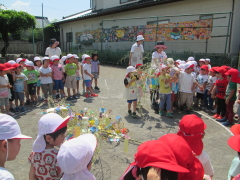 7月7日(金)に七夕焼きをしました。 クラスごとに「お願いごとが叶いますように」とお祈りをしました。 一人ひとりのお願いごとを書いた短冊と笹飾りをもやしました。 みんなのお願いごとが天に届くといいですね☆ |