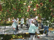 11月4日(金)にりんご園へりんご狩りに行きました 沢山のりんごに目を輝かせる子供たち。りんごの採り方を教えてもらい、自分で採ることができ嬉しそうな子どもたちでした。 |
