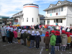 12月2日(金)に、おもちつきをしました。園長先生がおもちをつくのを「よいしょ~!よいしょ~!」と応援するこどもたち。つきたてのおもちをあんこときなこで美味しくいただきました。 伝統行事に触れ、楽しいおもちつきとなりました。 |