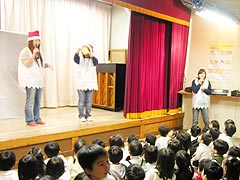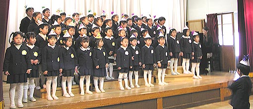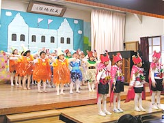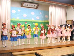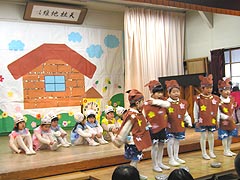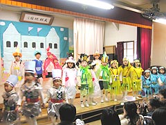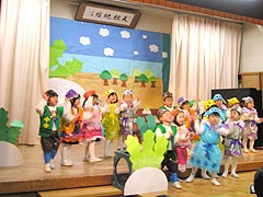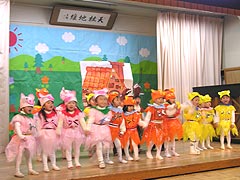 2005年12月16日おゆうぎ会が開かれました。この日のために楽しみながら毎日練習を重ねてきたみんなは、ステージの上で堂々とのびやかにオペレッタやミュージカルを演じていました。おうちの皆様も子ども達の新しい一面を発見し、成長を実感できたのではないでしょうか。 |